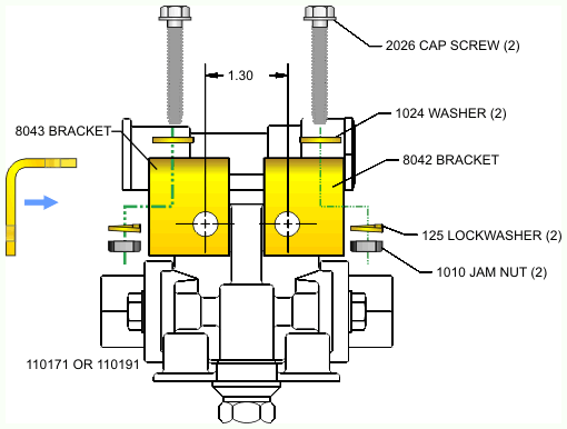 Install 8042 and 8043 brackets with long end pointing down