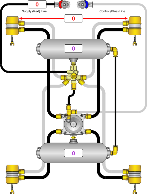 spring brake valve. The boxes with a number indicate nominal pressure levels